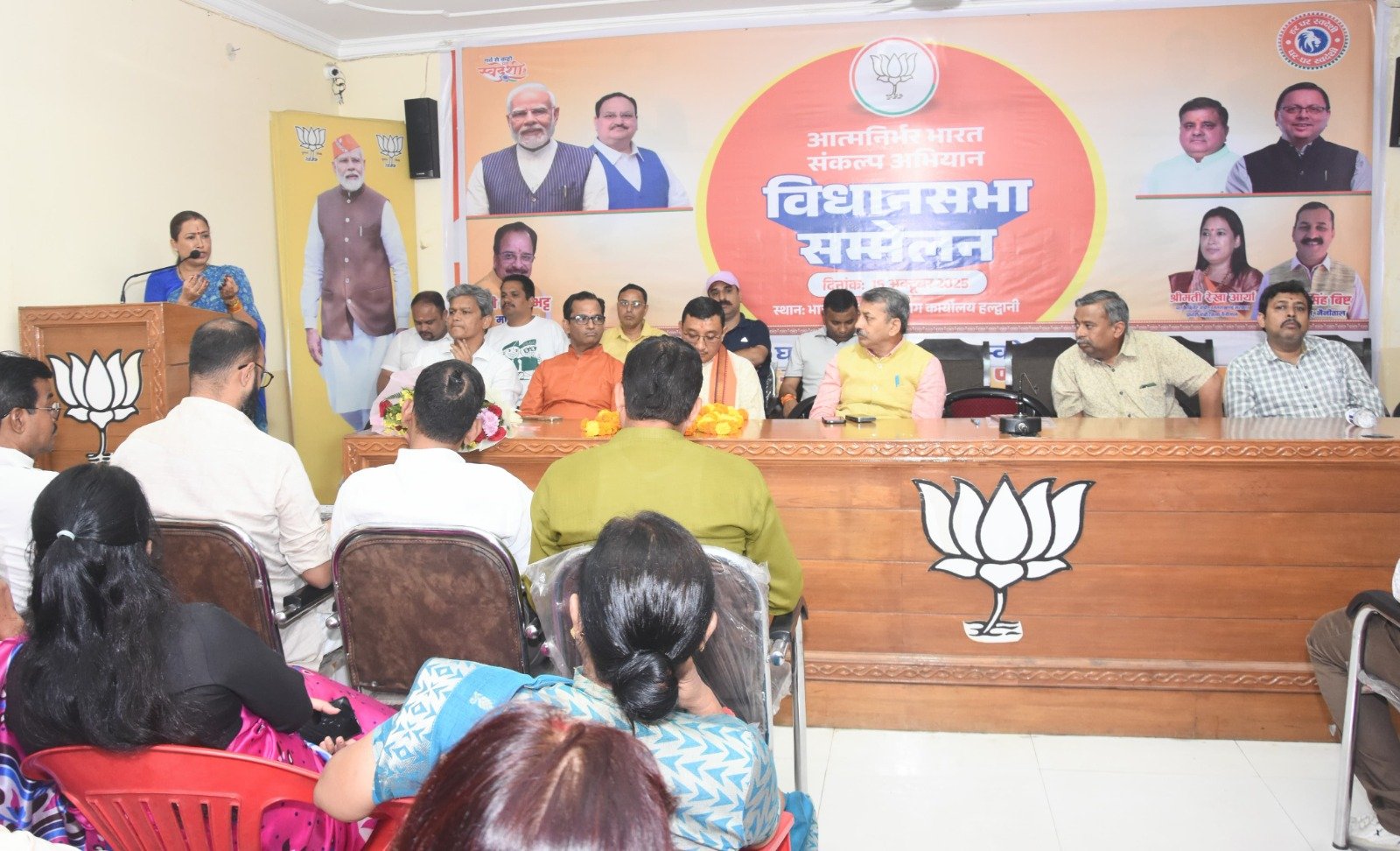 नैनीताल। भाजपा कुमाऊं संभाग कार्यालय में बुधवार को आयोजित आत्मनिर्भर भारत संकल्प अभियान के विधानसभा सम्मेलन में प्रदेश की कैबिनेट मंत्री रेखा आर्या मुख्य वक्ता के रूप में शामिल हुईं। कार्यक्रम में रेखा आर्या ने कहा कि जिस प्रकार स्वदेशी के विचार ने एक समय हमें अंग्रेजों से आज़ादी दिलाई थी, उसी मंत्र के सहारे अब हमें देश की अर्थव्यवस्था को सशक्त बनाना है और भारत को विश्व महाशक्ति बनाना है।