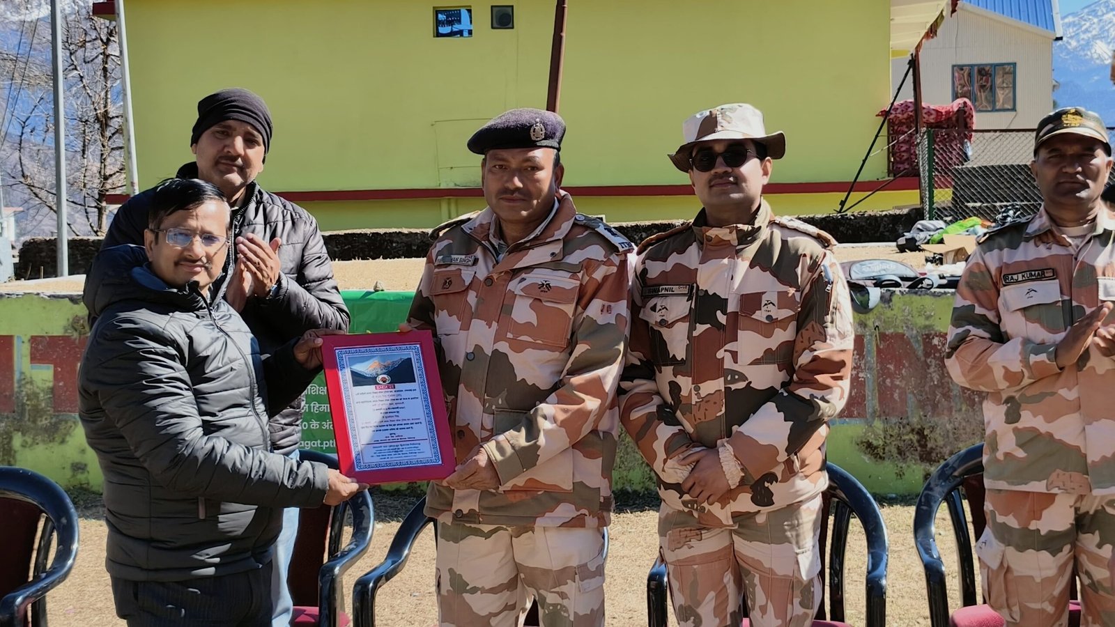 मुख्य अतिथि उप जिलाधिकारी डाक्टर ललित मोहन तिवारी ने मुनस्यारी की जनता की ओर से उप सेनानी बृजमोहन सिंह, निरीक्षक ईएससी राजकुमार, कांस्टेबल पीटीआई प्रकाश तथा सुश्री पूजा पाल को सम्मान पत्र देकर सम्मानित किया गया।